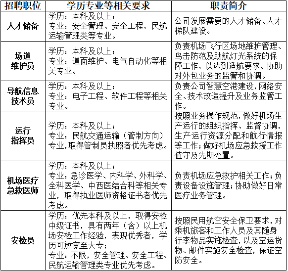 1. 学历:本科及以上,人才储备、场道维护员和导航信息技术员岗优先考虑应届毕业生。